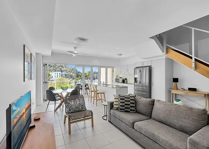 Tijdens een verblijf in Waterfront Townhouse 'Beachside Apartment 16' - Central Location, Pool, Good Wifi Nelly Bay van 145 m² kunnen gasten zich ontspannen op een terras maar 500 meter van de jachthaven Magnetic Island. Er is ook een buitenzwembad, dat het hele jaar geopend is voor een nog aangenamer verblijf.